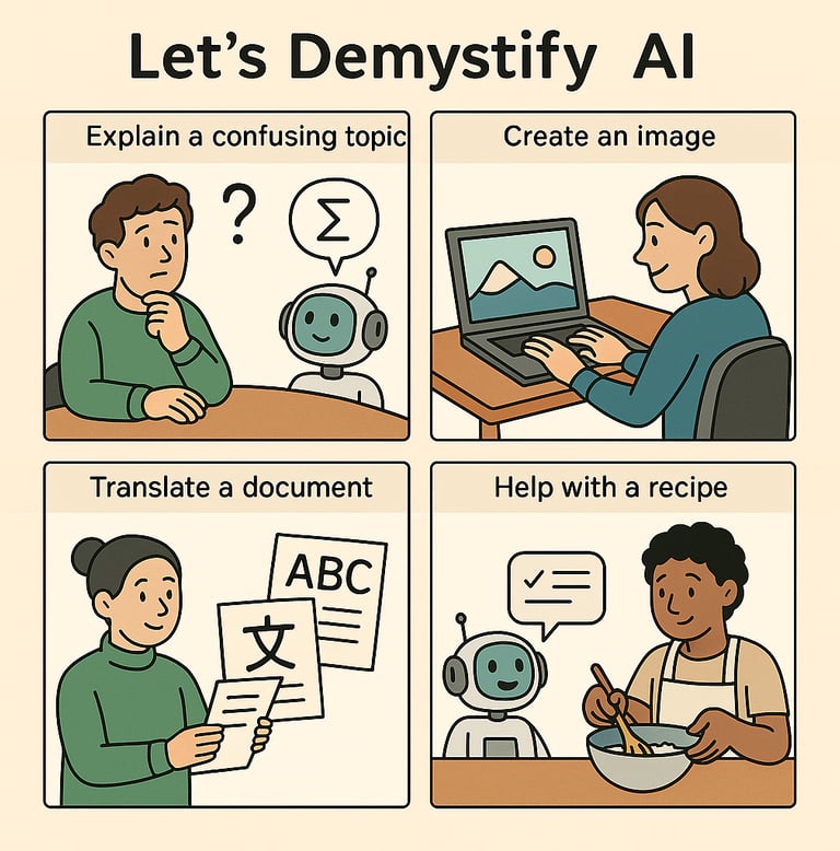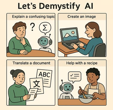 We don’t just explain AI — we teach you how to use it to make life smoother, easier, and smarter.